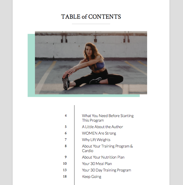 This is a step by step guide for YOU! My 30 Day Program is very easy to follow & understand. I provide descriptive details on what each movement/exercise looks like so you are not dumb-founded in the gym. I give details on how much rest you should be taking between each set, how to breathe correctly, why form is SO important & basically how to demolish each and every workout for a straight 30 days.